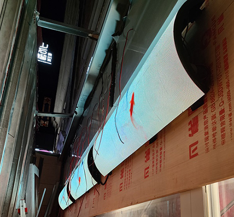 熱虎上海店室內(nèi)p2.5曲面屏由上海智彩電子科技有限公司承制。該曲面屏采用p2.5軟膜組,輕薄,柔韌性好。屏幕高清顯示,色彩細膩還原性好。